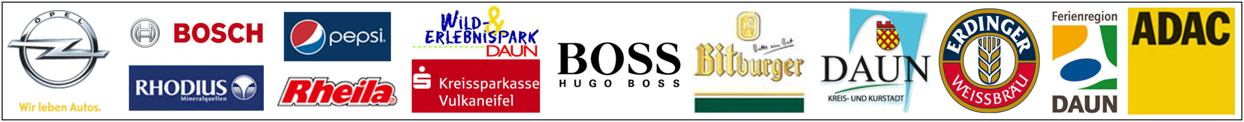 Adam Opel AG, Rüsselsheim – Bosch Automotive Tradition – Hugo Boss – Kreissparkasse Vulkaneifel – Wild-Erlebnispark, Daun – Rhodius Mineralquellen – Stadt Daun – Tourist-Information Ferienregion Daun – Rheila, Sankt Augustin – ERDINGER Weißbräu – Bitburger Brauerei, Bitburg – ADAC Mittelrhein e.V. – PITWALK, Motorsport exclusiv