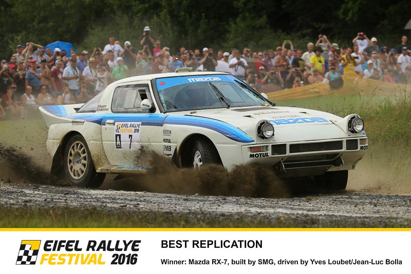 In Ermangelung eines sportlichen Siegers bestimmte eine Experten-Jury die Gewinner der dreitägigen Demonstrationsfahrt – keine leichte Aufgabe in Anbetracht des hochkarätigen Starterfelds. Nach intensiver Beratung bestimmten die Experten den liebevoll nachgebauten Mazda RX-7 von Yves Loubet als „Best Replication“. Den Preis für das beste Originalauto überreichte Fritz Cirener, Leiter von Bosch Automotive Tradition, an Wolf-Dieter Ihle für dessen neu aufgebauten Audi Sport Quattro. Die fünf Rallye-Champions Walter Röhrl, Miki Biasion, Stig Blomqvist, Yves Loubet und Harald Demuth wählten den Peugeot 205 T16 von Fernando und Dario Garrido beim „Champion’s Choice“ Award zu ihrem Lieblingsauto. Darüber hinaus wurde der frühere Beifahrer, Teamchef und Buchautor John Davenport mit dem „Rallying Ambassador“-Preis als Botschafter des Rallyesports ausgezeichnet.